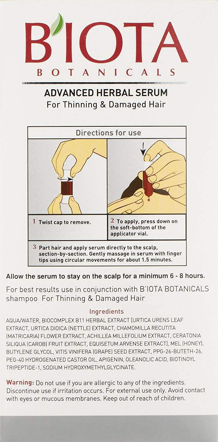 BIOTA BOTANICALS products are carefully crafted to address specific hair concerns, and the ADVANCED HERBAL CARE LEAVE IN OVERNIGHT SERUM is no exception. It is the result of years of research and testing, and it has been proven to effectively promote hair growth and combat hair loss.