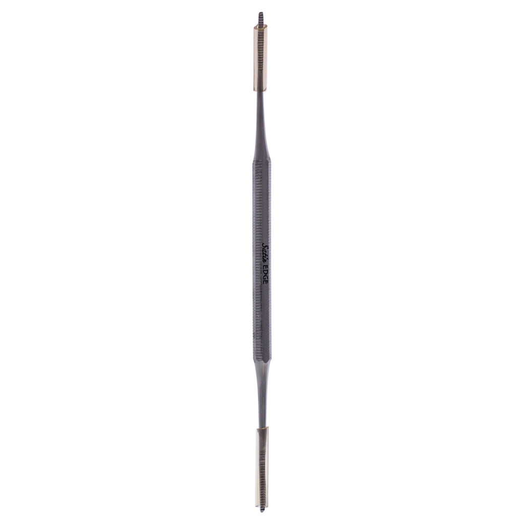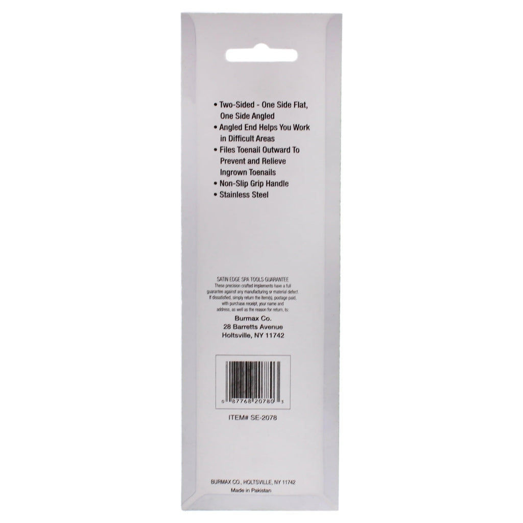 This ingrown toenail file and cleaner is made of stainless steel. Its curved file end removes ingrown toenails and its round end cleans underneath nails. An easy grip center handle prevents slipping.