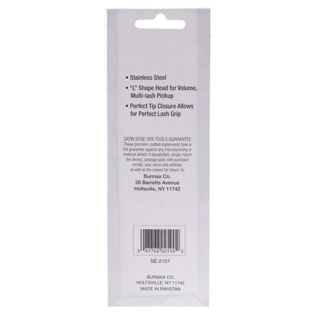 100percent stainless steel tweezer with an L shaped head for volume, multilash pickup. Perfect tip closure allows for perfect lash grip. Ideal for picking up tiny lashes and for separating and isolating desired lashes for application 4-.5 L x 0.25 W