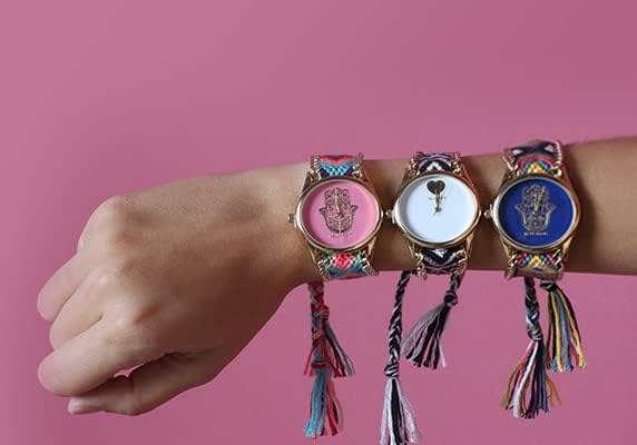 MNSHIWC Hindi Heart - Gold/Black Nylon Strap Watch by Manoush for Women - 1 Pc Watch