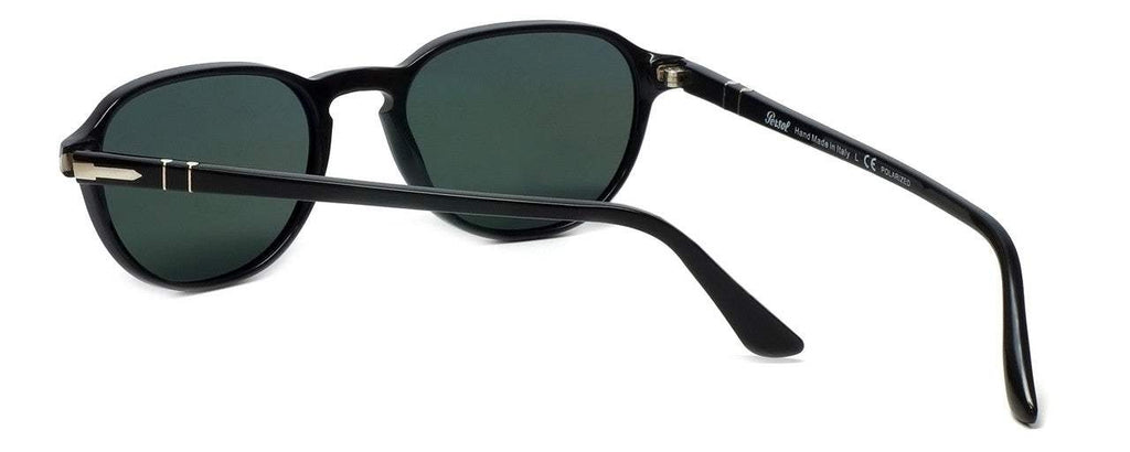 Persol PO3053S 9014-58 is a full rim frame for unisex which is made of Plastic material. Features of sunglasses are Black color frame with Green Polarized lens of a Oval shape. 100% UVA & UVB.