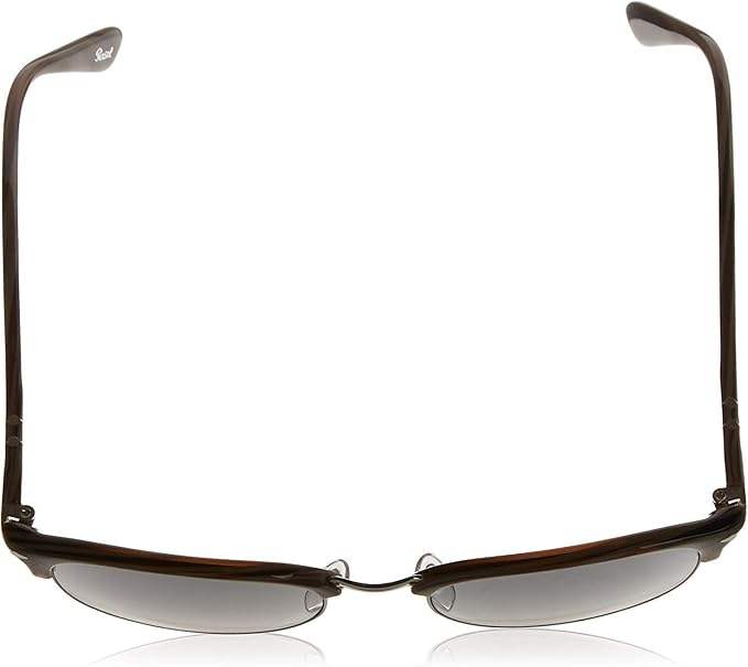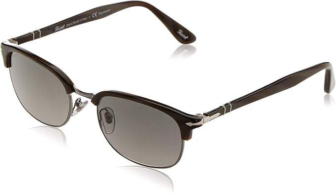 Persol PO8139S 1045-M3 is a full rim frame for men which is made of plastic material. Features of sunglasses are dark horn color frame with grey polarized gradient lens in aviator shape. The logo of Persol is displayed on the temple.