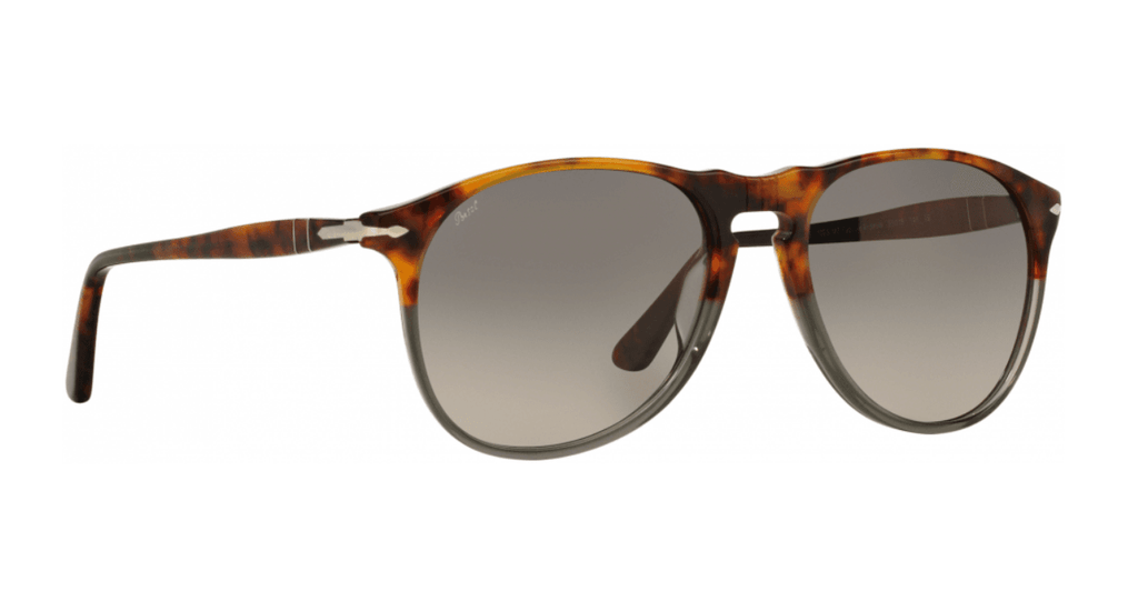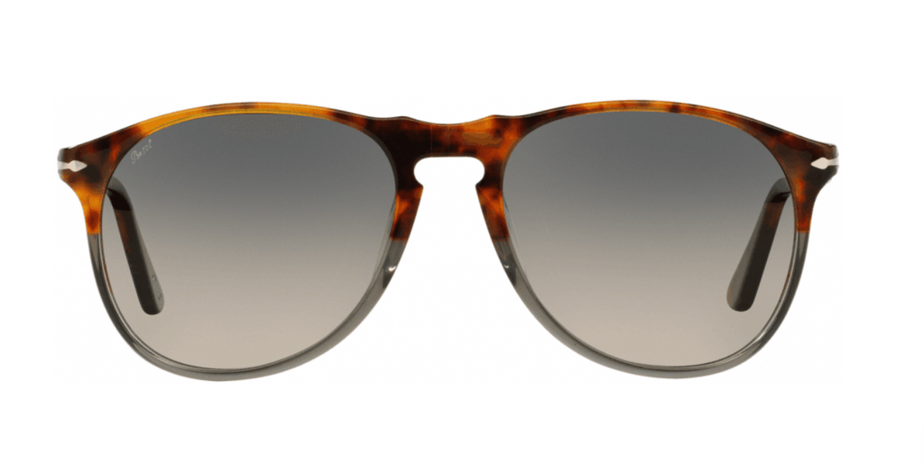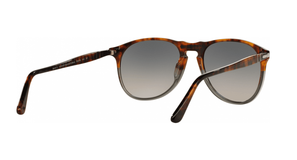 Persol PO9649S 1023-M3 is a full rim frame for men which is made of plastic material. Features of sunglasses are color frame with grey polarized gradient lens in aviator shape. The logo of Persol is displayed on the temple.