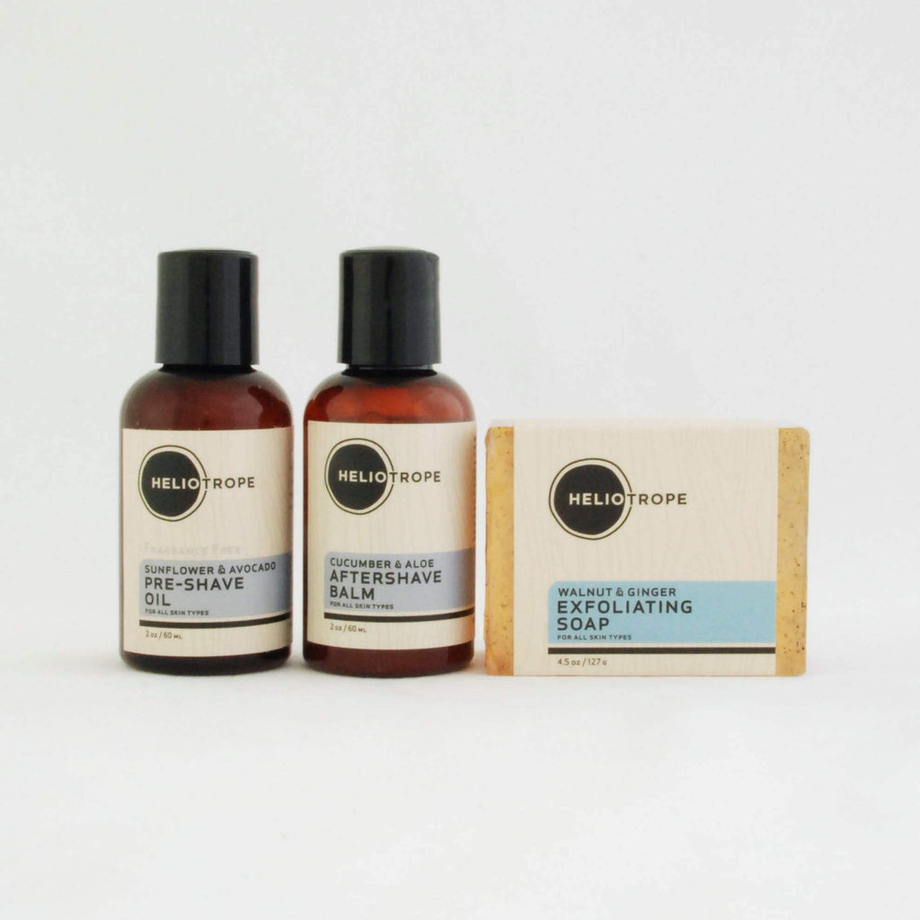 Let’s face it, sometimes shaving is a chore. We’re here to help save the day with natural, soothing products. This kit offers our aloe & comfrey shave gel (a light-foaming shave gel with hydrating botanical ingredients); and our healing shea butter, vitamin E & menthol creamy aftershave. We’ve added walnut exfoliating soap to round out the experience.